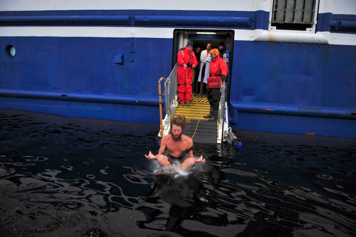 Next was the polar plunge! The point was north of Danco Island, just off the peninsula, looking directly at it. The surface snow by that time had gone, but the fact that it had frozen not so long ago meant the water was between 0 and -1.8C, when sea water starts to freeze. 45 people make the jump- a record number. The shock of jumping in is immense and instantly makes you pull a 'pain face' and literally takes your breath away. The vodka and adrenaline kicks in though. Afterwards is invigorating to beyond description and you want to do it again.Enjoyed this story?