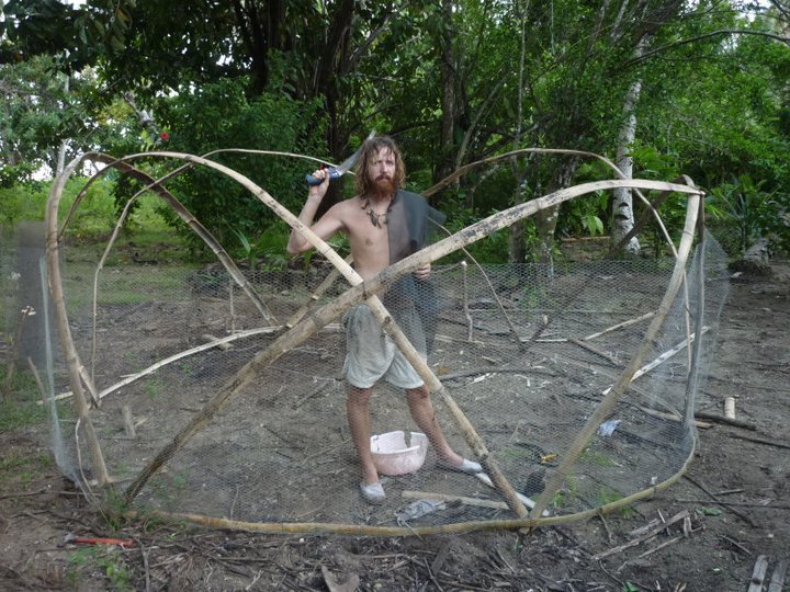 Our first day, was no exception. A welcome start to the day after drinking kava and rum! After breakfast Adam was keen to get us involved immediately. Aware that we did not have that long to commit to the project, he introduced us to a few things he wanted to get cracking on. His long term aim was to build a permaculture school with living quarters. Also to become completely self-sufficient. It was a project very near the start, he himself had only been living in Qamea for a year. The land was undeveloped. His short term aim was food management. Terracing and managing plots, then planting were key jobs over the period we were there. With Al's experience in building with bamboo, Adam was also keen to get Al to build an 11 sq/m round chicken coop to house 10 chickens comfortably.