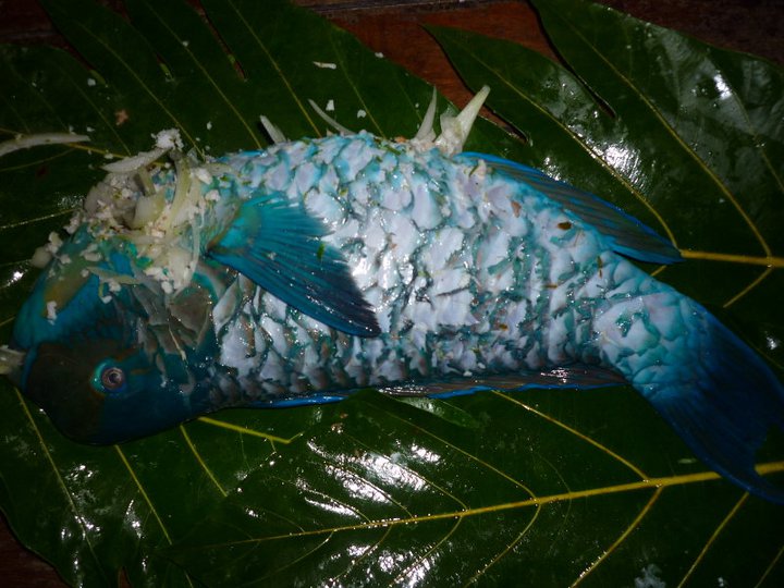 With all of the supplies we brought, Gella was happy to cook a lot of food. It also meant that Adam had brought her some Kava. A root that Fijians grind into a paste with water in a large bowl. It is what what described to me as Fijian beer. In fact it is not alcoholic but gives you a zingy numbness in your mouth and if you drink enough of it, a dopey feeling takes over you. Fijians LOVE Kava despite it not being the nicest taste and looks like muddy dish water. With the dopey effect it can make people lazy and the government has unsuccessfully tried to stop it's consumption. It is far too ingrained in the culture for that to occur though. Our first night on the island, Gella wanted to introduce it to us. One of the few neighbours, Raphael, came over to say hi and drink with us. The custom is for one person to deal the Kava, with a half coconut shell full, half full or a little less of Kava. This was called 'Tsunami' or 'Full tide' or 'Low tide'. The aim is for the amount to be downed in one. This gets harder and harder to stomach as the night goes on. We were also drinking rum punch so it wasn't so clear what effects we experienced on this occasion.