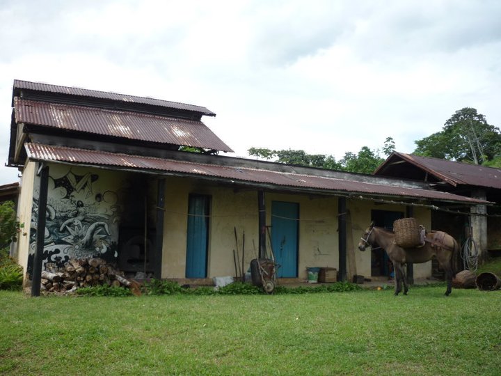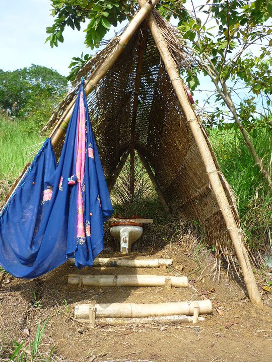 We were productive though. I took on the task of building a toilet near the guesthouse to accommodate the influx of more people that happened during the Christmas and New Year high season, when 14 people was promised! This seemed crazy to our group of now 7, we were all a tight family and change would be disruptive and hard to accept. What if the balance changed!? Either way I began the task and after cutting and leveling a pathway with bamboo steps positioned the site on a bank that over looked the river and waterfall, behind a tree for coverage. A squat toilet was the way to go, until Alex remembered that he salvaged a porcelain toilet!