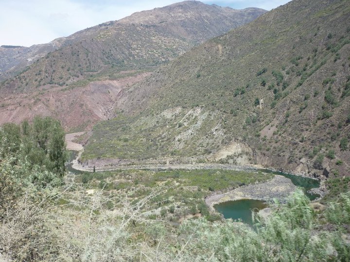 We headed out of town and wondered where it was "Ingenerio es un hora senior y dos soles". 1 hour in the bus! woah... didn´t expect that. Either way the drive was amazing and it was good to be taken somewhere we had no control over, recommended to us by someone we had met once, in the middle of knowhere and without a Gringo in sight. The place turned more dusty and the hot air poured in to fill our lungs with a mixture of Eucalyptus that lined the roadside. Farmlands scattered as far as the eye could see until you met the Andes range. Small villages with quaint squares were the order of the day. Ladies wearing brightly coloured cardigans despite it being hot, and adorned with top hats, or bowler-esque style hats. The women it seemed also aged faster than the men and looked, often like leathered skin prunes. A sign of hard work we thought.
