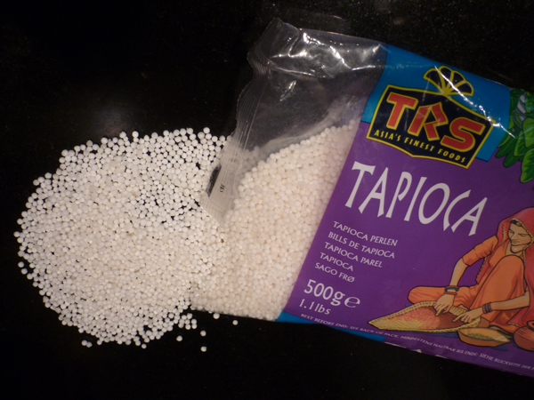 In turn other products like tapioca pearls, flakes and beads are produced for different purposes. The well known English tapioca pudding uses the pearls (below).