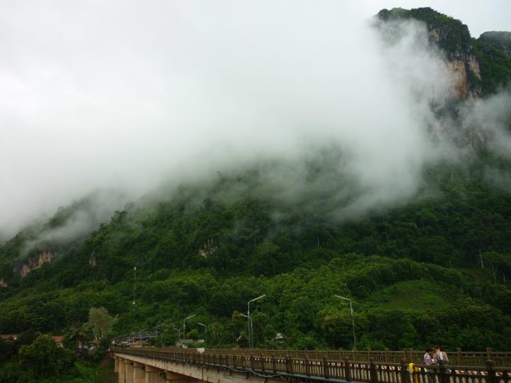 We picked up yet more coffees as luckily for us Jan had a big night previously with a useful contact in the social development world and was feeling pretty bad also. We set off across the bus station to another terminal dedicated to jeeps and minivans that take you to more remote villages off the beaten track. Within an hour of introductions to ourselves and the project set off to Nong Khiaw (70,000 kip or £5.80) through the dusty outskirts of Luang Prabang, through limestone extrusions that towered dense trees overhead. Some of these seemed to hang off a black face so steep and at such an angle that it was not possible that it would remain.
