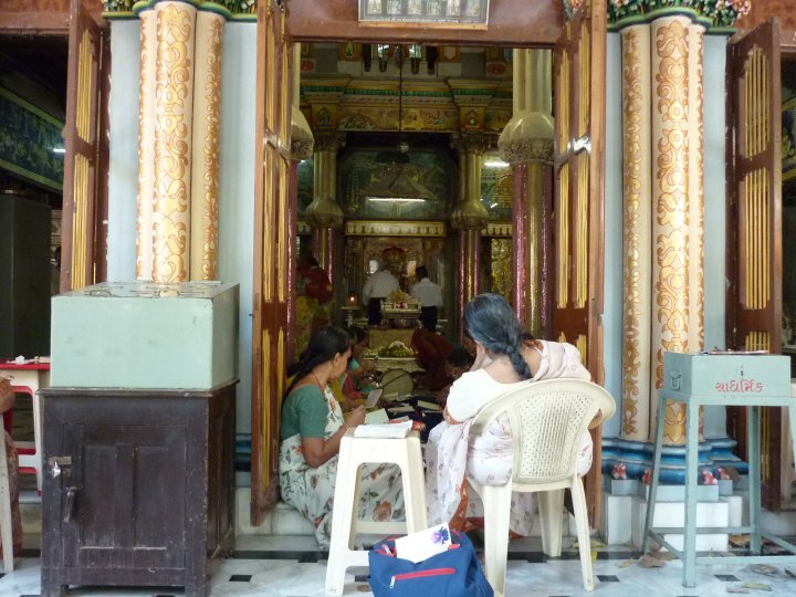 The next day we set off the Chowpatty beach and when we confirm what the guide book says (the water is highly toxic and very VERY dirty) decide to head for the hills instead to find a Jain temple (Jain is a religion that was derived from Hinduism). Another burning day and so we walk up the hill sweat ahoy. This area is where all the Indian billionaires live. Did you know there is more millionaires in India than anywhere else in the world? I have not verified this, but would not be surprised given some of the places we saw. This really highlights the difference in Mumbai's population and how our idea of cleanliness is so different. Even the middle/ upper classes it seems to me are not scared of street dirt or things falling apart. The temple is beautiful and serene. We watch the devotees sing and read prayers, watch cleansing rituals before we head out again to an area that is supposed to be in the middle of a load of buildings and called a "tank". This turns out to be a kind of lido where people come and hangout, we have a brief dip with the people and other animals before heading back sweltering and tired.
