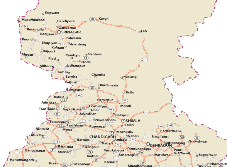 India Maps with places to visit