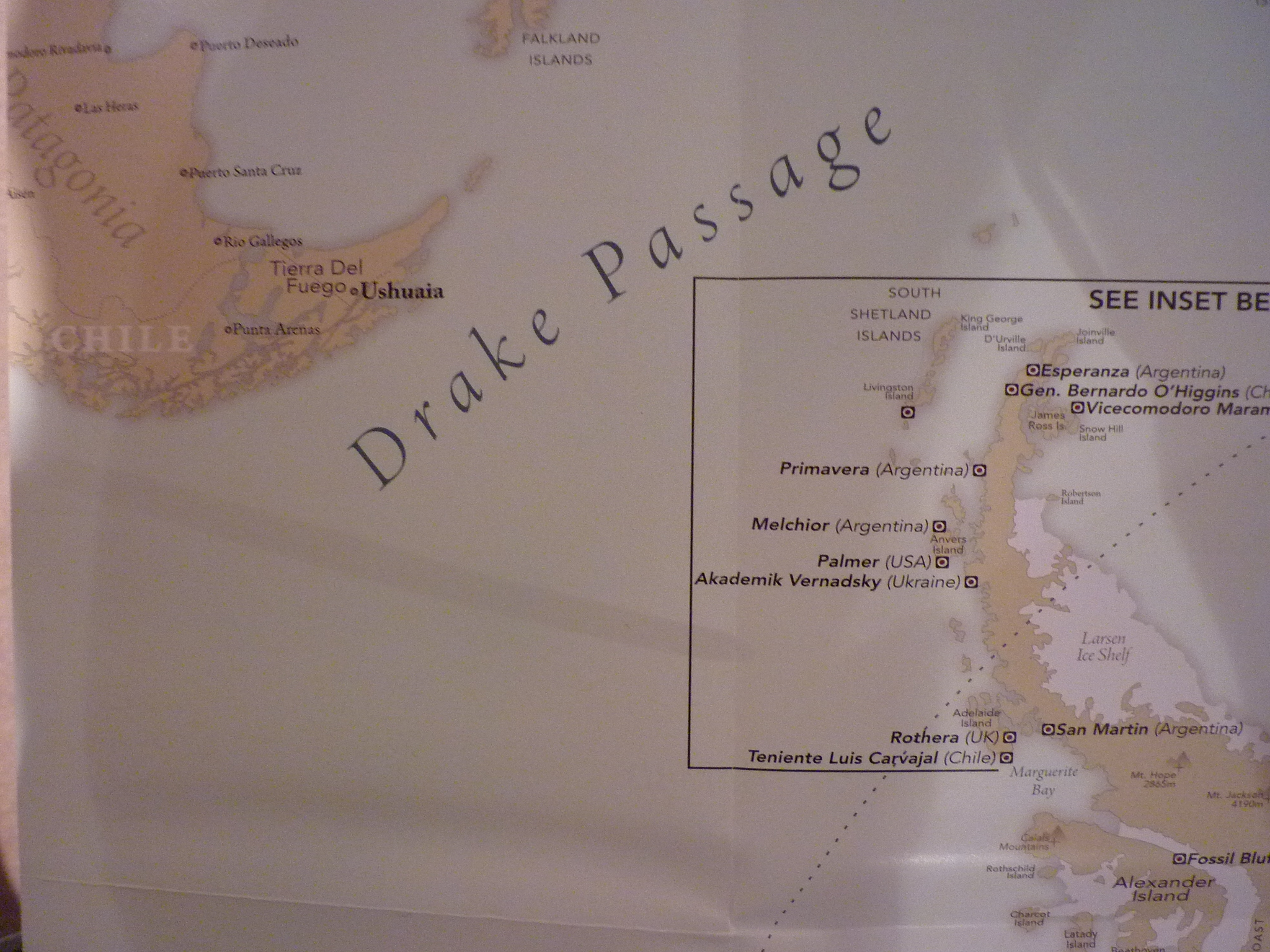 Map of the Drake Passage sea and South Shetland Islands, Antarctica. Thanks to Quark Expeditions. The Antarctica Peninsula and surrounding islands with land labels. Thanks to Quark Expeditions. Map of the west coastline of Antarctica. Thanks to Quark Expeditions. The Ross sea and the Ross ice shelf map, Antarctica. Thanks to Quark Expeditions.