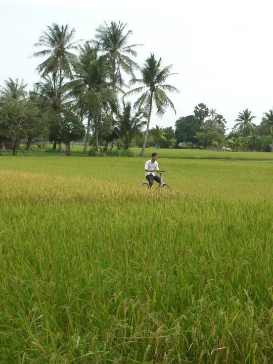 We decided to cross over the old bridge and head north along the river. It was very hot and sticky and hard to cycle on the shadeless dirt roads. We soon came to Olly's Guesthouse and then Bodhi Villa's (the latter was recommended to us by Danny from Hooha in Sihanoukville). Out of pure curiosity we checked out Bodhi Villa. It was just as I suspected. Beautiful setting on the river, very relaxed vibe and a variety of sleeping options (dorm, bungalow, or tree top bungalow). The major problem for us is that it was out of town and it would be difficult without a motorbike to not be reliant on their overpriced restaurant. Also it felt like a hide away retreat for backpackers, not somewhere to go if you want to see real Cambodia. In the riverside restaurant we saw 3 back packers all sitting with their backs to the river view using their fancy looking laptops watching videos and listening to music. Hmmm...this was not going to be our cup of tea...