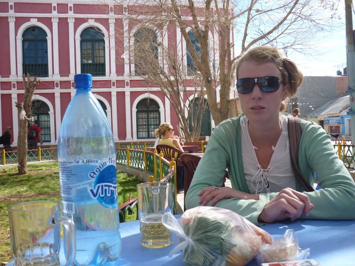 could jump on a bus and gert to our next destination. It has to be said that there isn´t a whole lot to ´do´ in this pueblo, gateway to Salar Uyuni and transit town. So we enjoyed the late afternoon in he sun with a couple of cervezas on the little plaza on Uyuni. Oh, and took some unflattering photos!