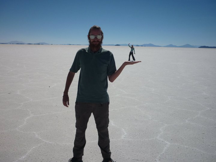 The place was filled with jeeps with people of the same tour as us. Young people everywhere going mad with taking photos and playing around with the scale. Inventing silly poses. Al and I could resist attempting this too, alothough didn´t have much time for it at this destination, and had to wait until Isla de los Pescados.