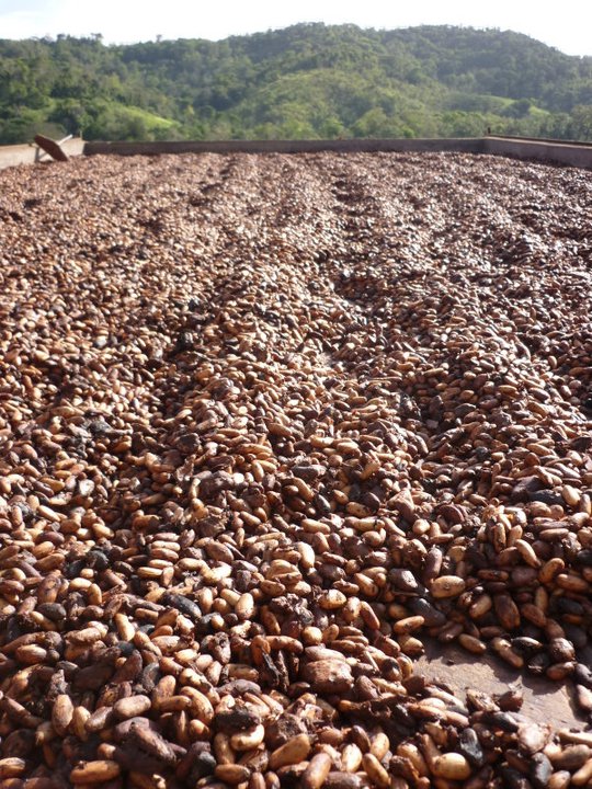 At this point the seeds are dried and turned daily, which means that 7am scraping sounds above our heads and remnants of cacau seeds falling onto our beds. After 4- 5 days we would then take all the seeds down, bag them, take them back over the river for selling.