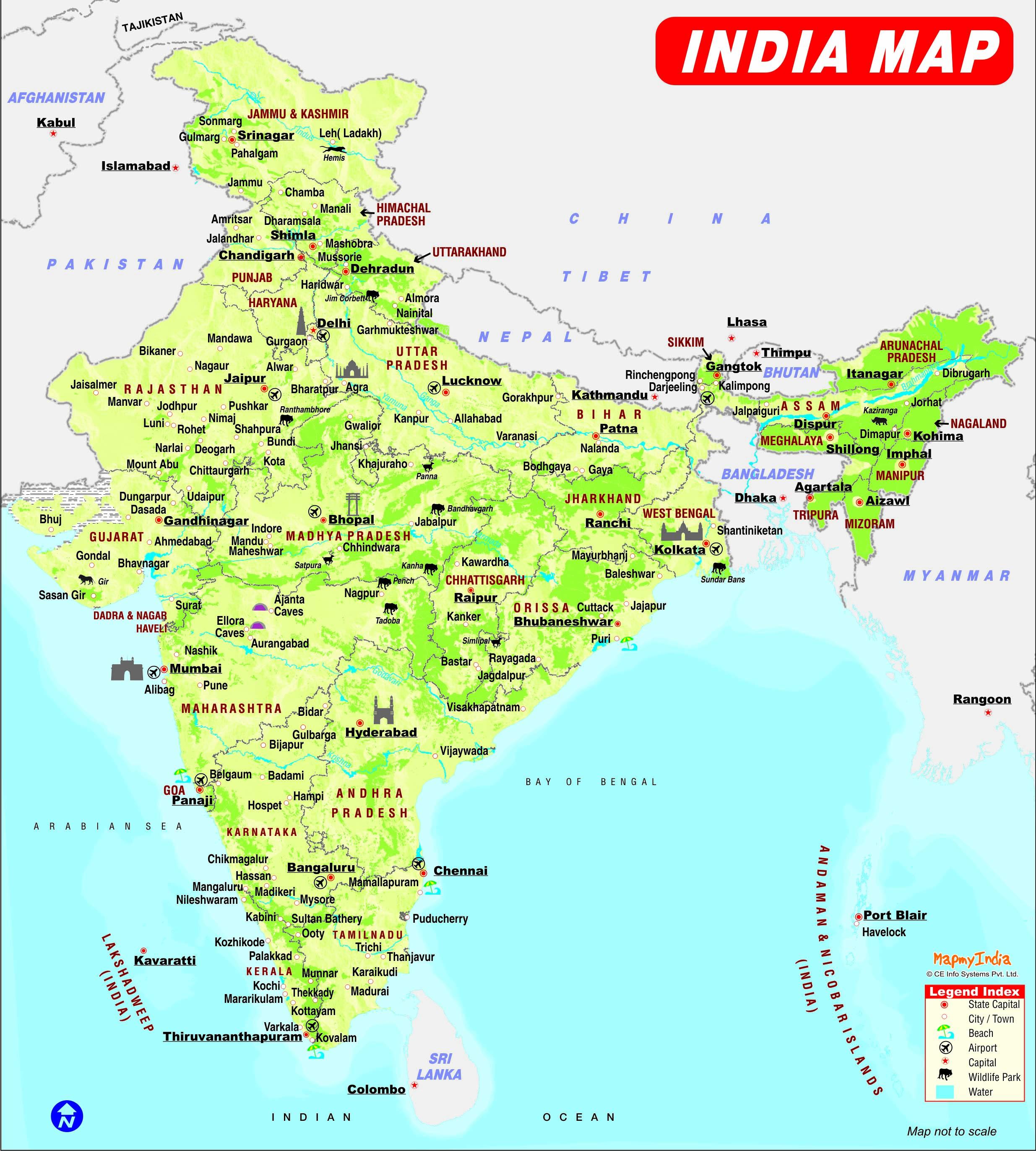 India Maps with places to visit