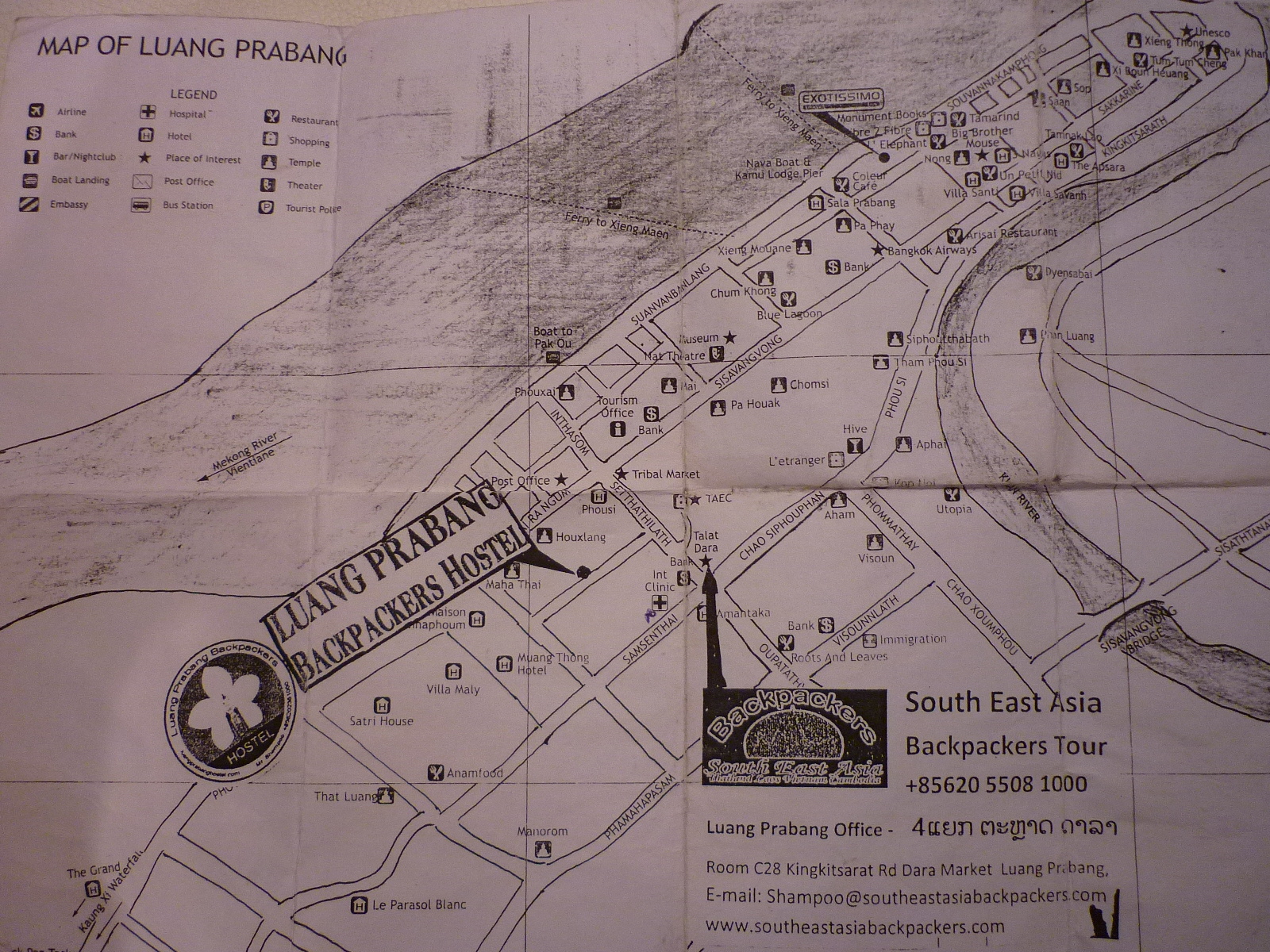 North Laos with major roads and destination points. Care of "Laos Travel" North Laos with major roads and destination points. Care of "Laos Travel" Basic map of Luang Prabang city. From "South East Asia backpacker tours".