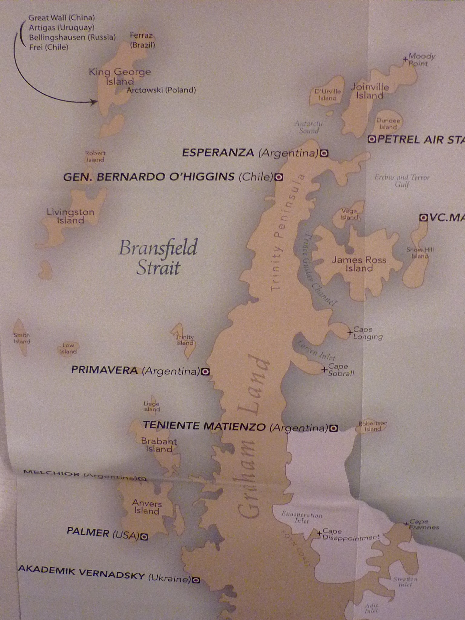 Map of the Drake Passage sea and South Shetland Islands, Antarctica. Thanks to Quark Expeditions. The Antarctica Peninsula and surrounding islands with land labels. Thanks to Quark Expeditions. Map of the west coastline of Antarctica. Thanks to Quark Expeditions. The Ross sea and the Ross ice shelf map, Antarctica. Thanks to Quark Expeditions.